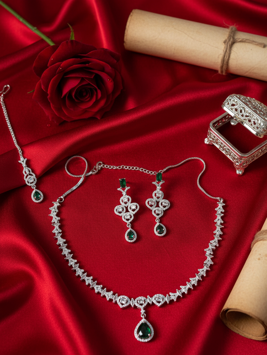Emerald Garden Lattice Necklace & Earrings Set