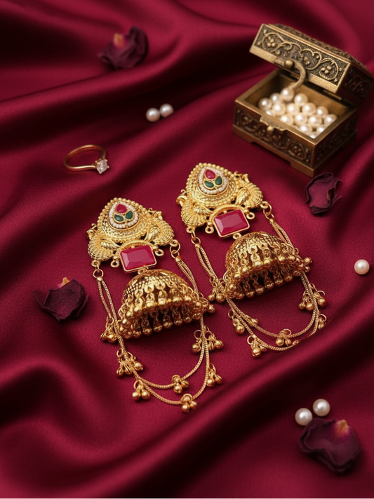 4.9 (84)Peacock Jhumka with Ear Chain Earrings