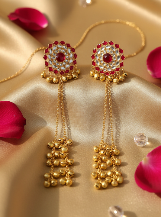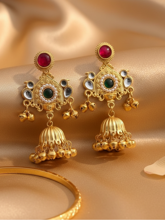 4.9 (30)Ruby Kundan Jhumka Ghungroo Earrings