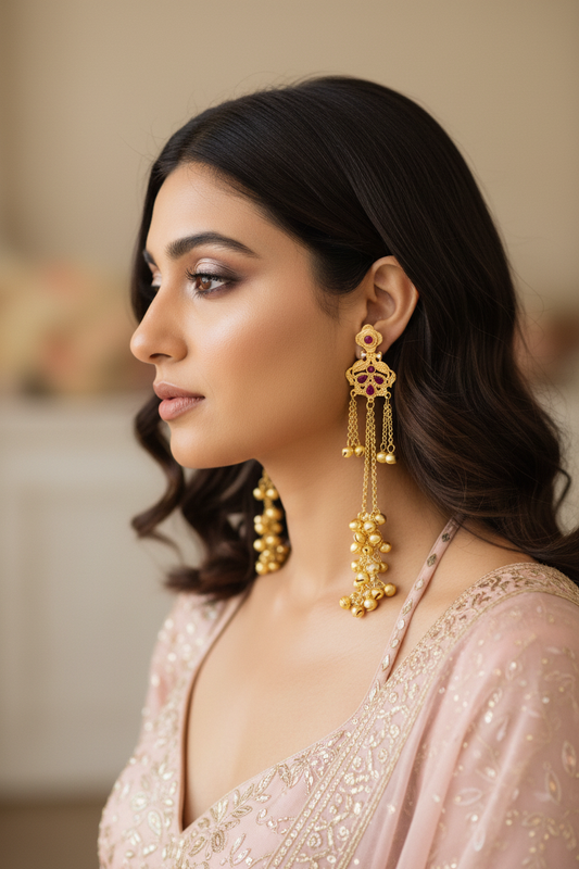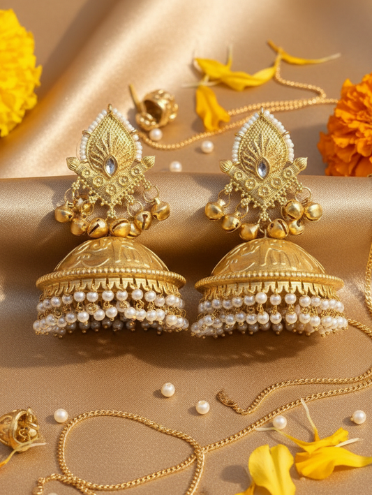 4.9 (78)Golden Temple Jhumka Earrings with Pearl Fringe