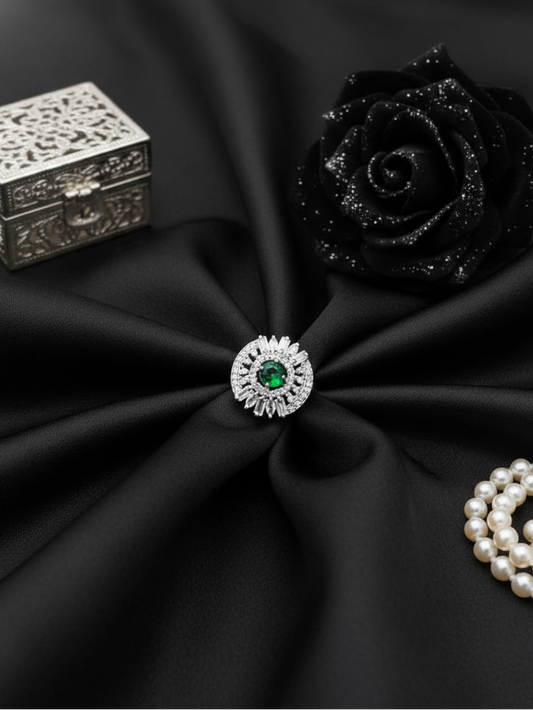 Emerald Starburst Halo Ring