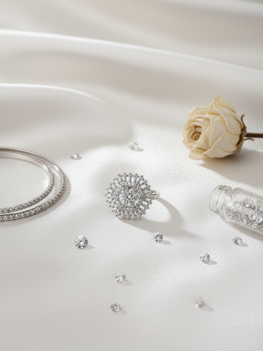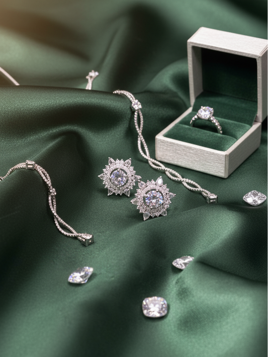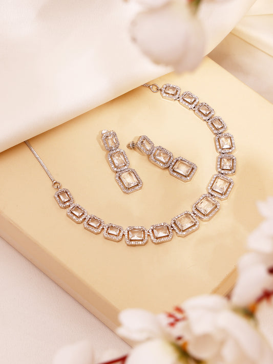 White Cubic Zirconia Sparkle Rhodium-Plated Jewellery Set