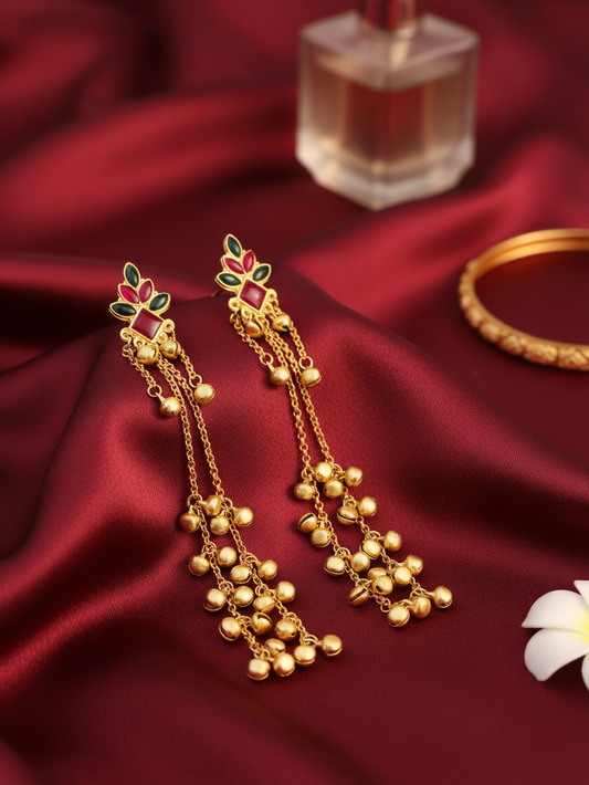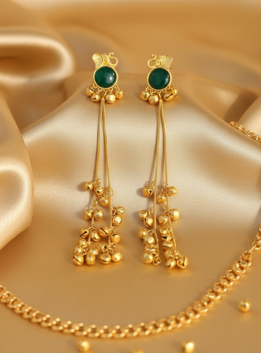 Emerald Elephant Earrings with Golden Ghungroo Cascade