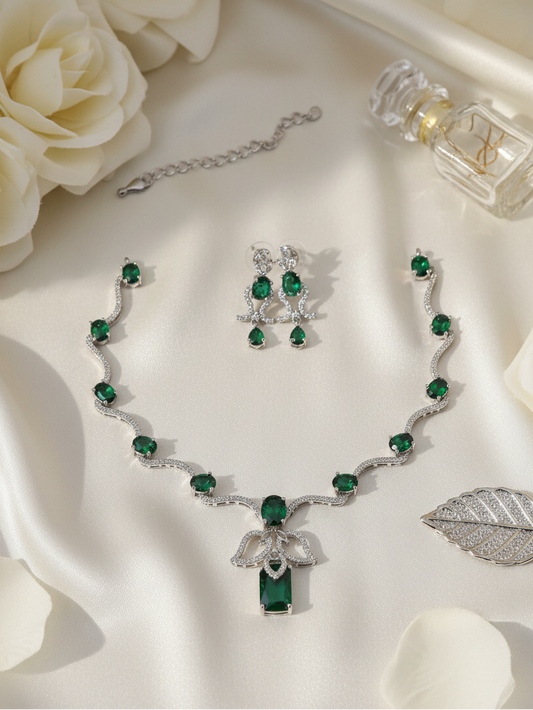 Emerald Cascade Wave Necklace & Earrings Set