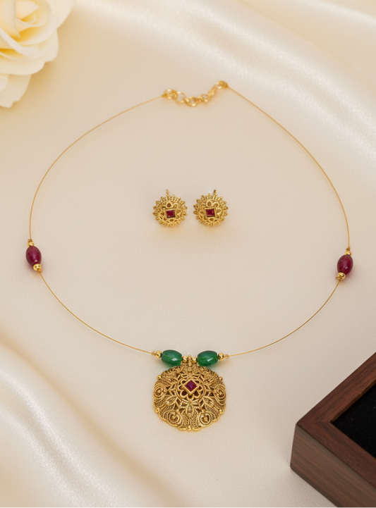4.9 (45)Ratna Medallion Minimalist Necklace & Earrings Set