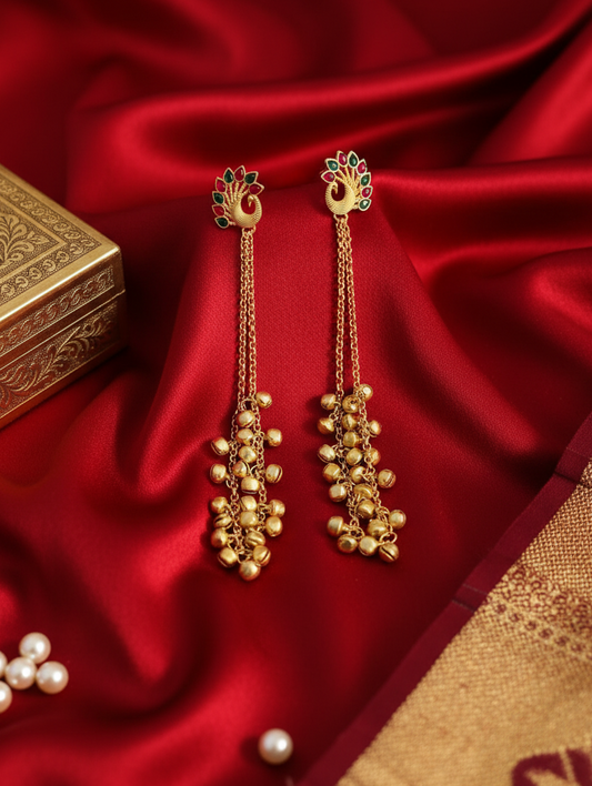 4.8 (22)Peacock Ghungroo Cascade Earrings