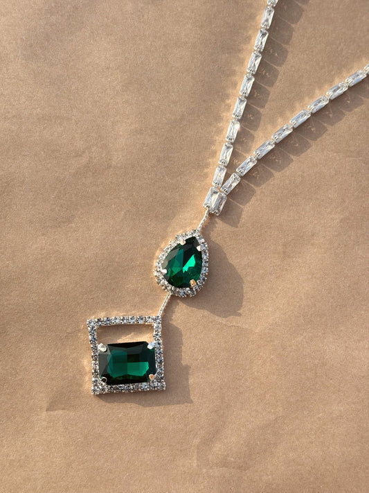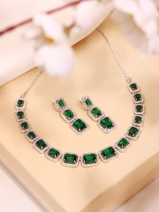 Emerald Green & White Cubic Zirconia Premium Jewellery Set